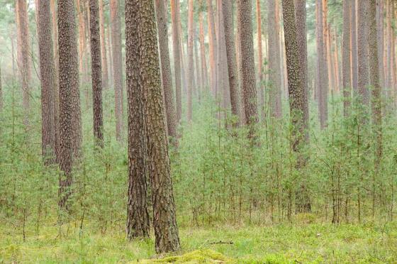 Głównym gatunkiem lasotwórczym, występującym na każdym niemal siedlisku, jest sosna zwyczajna. Powierzchniowy udział drzewostanów z przewagą sosny jest bardzo duży i wynosi ponad 89 proc. Na ubogich siedliskach sosna tworzy lite drzewostany, natomiast na siedliskach żyźniejszych występuje w zmieszaniu z dębem, brzozą oraz świerkiem. Na siedliskach żyznych (las świeży), spotykana jest jako gatunek domieszkowy w drzewostanach dębowych, rzadziej bukowych. Na ubogich siedliskach wilgotnych i bagiennych może tworzyć lite drzewostany lub z domieszką brzozy, natomiast na nieco żyźniejszych może występować w zmieszaniu z brzozą, świerkiem i olszą.